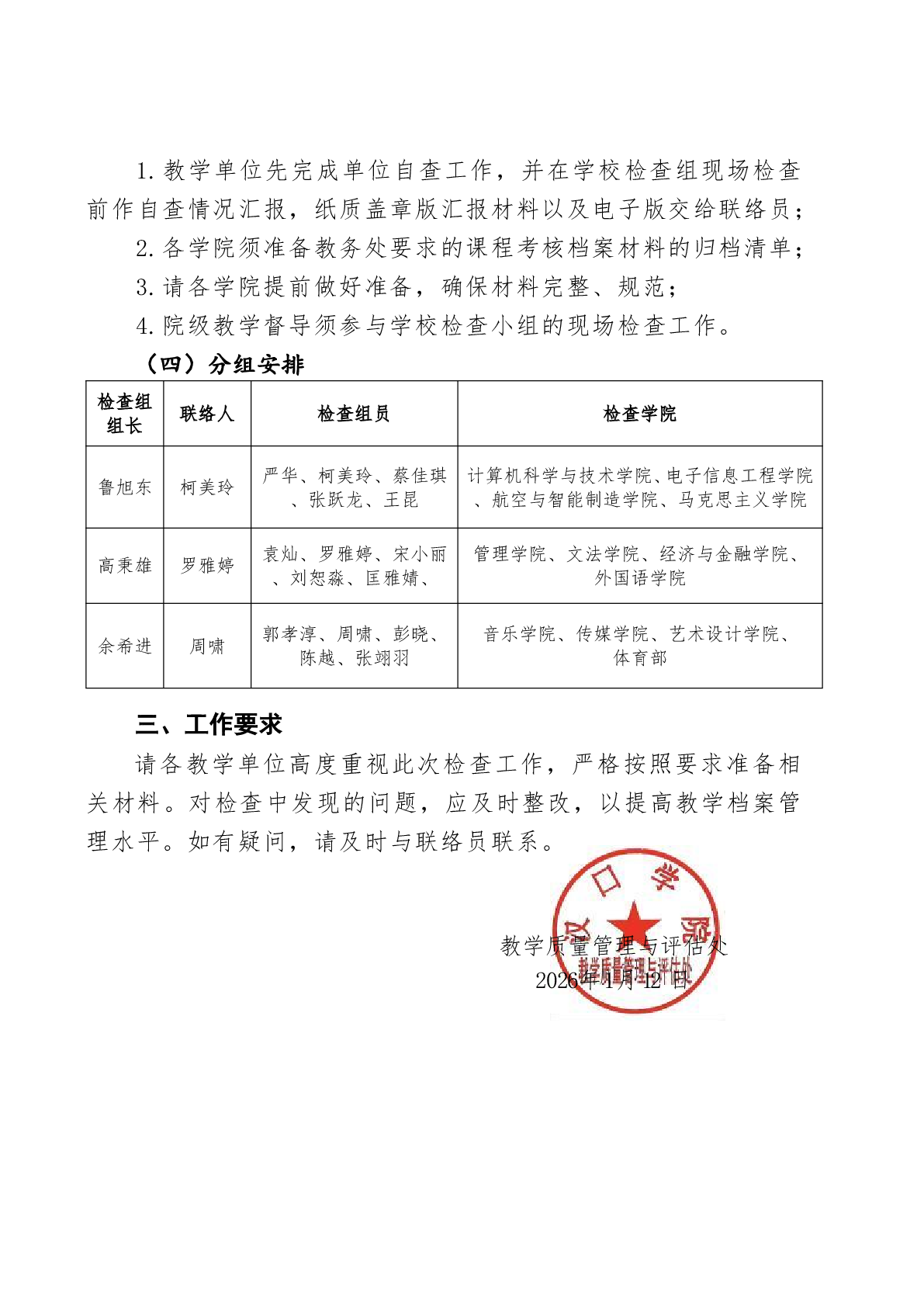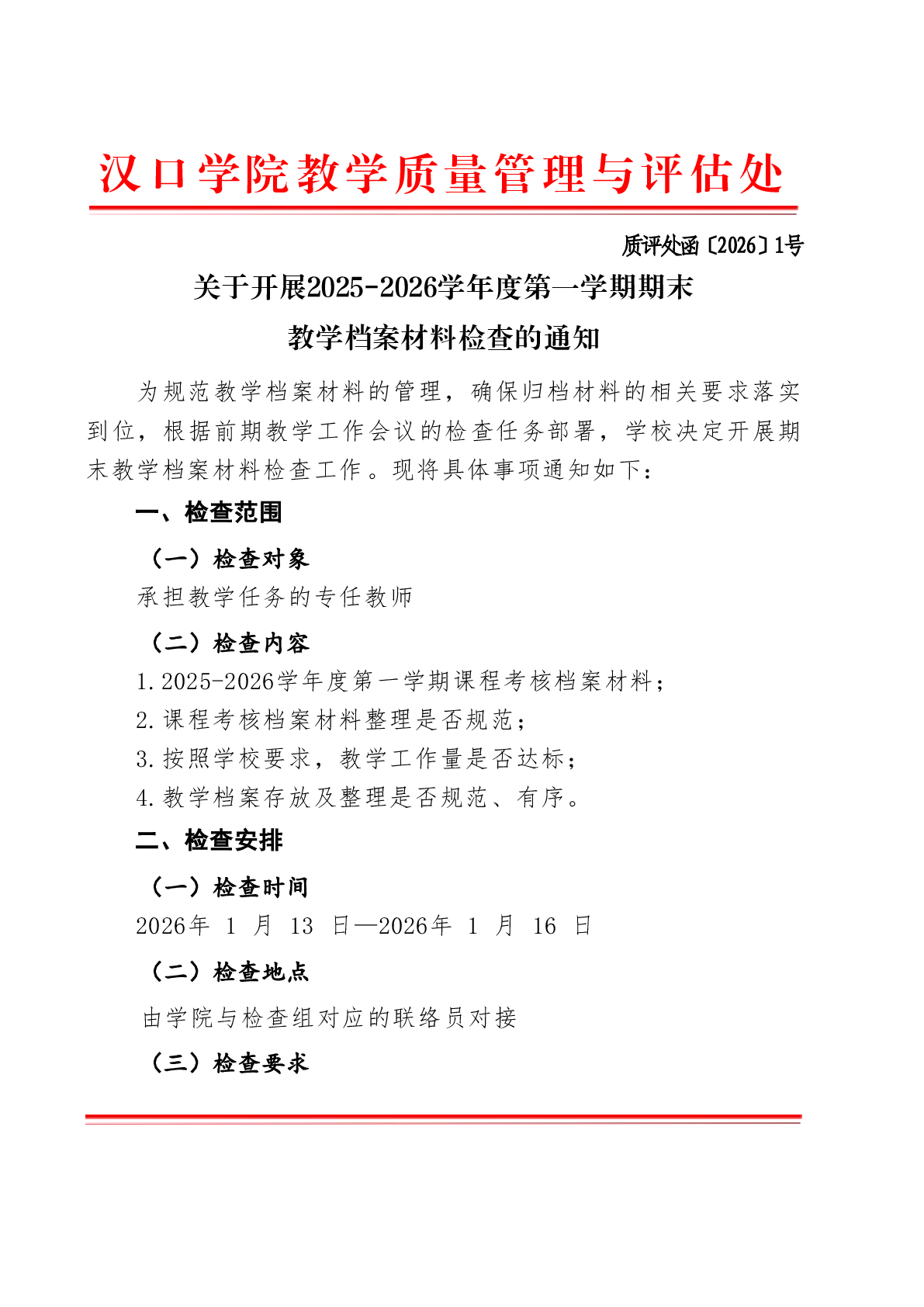 关于开展2025-2026学年度第一学期期末教学档案材料检查的通知