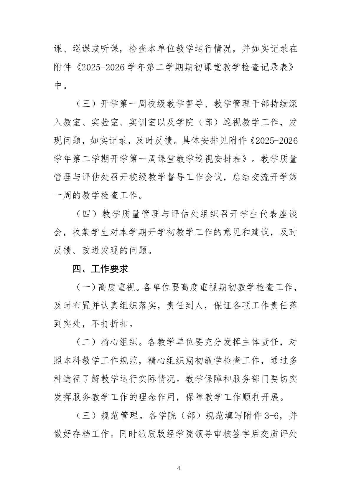 关于开展2025-2026学年第二学期期初教学检查工作的通知