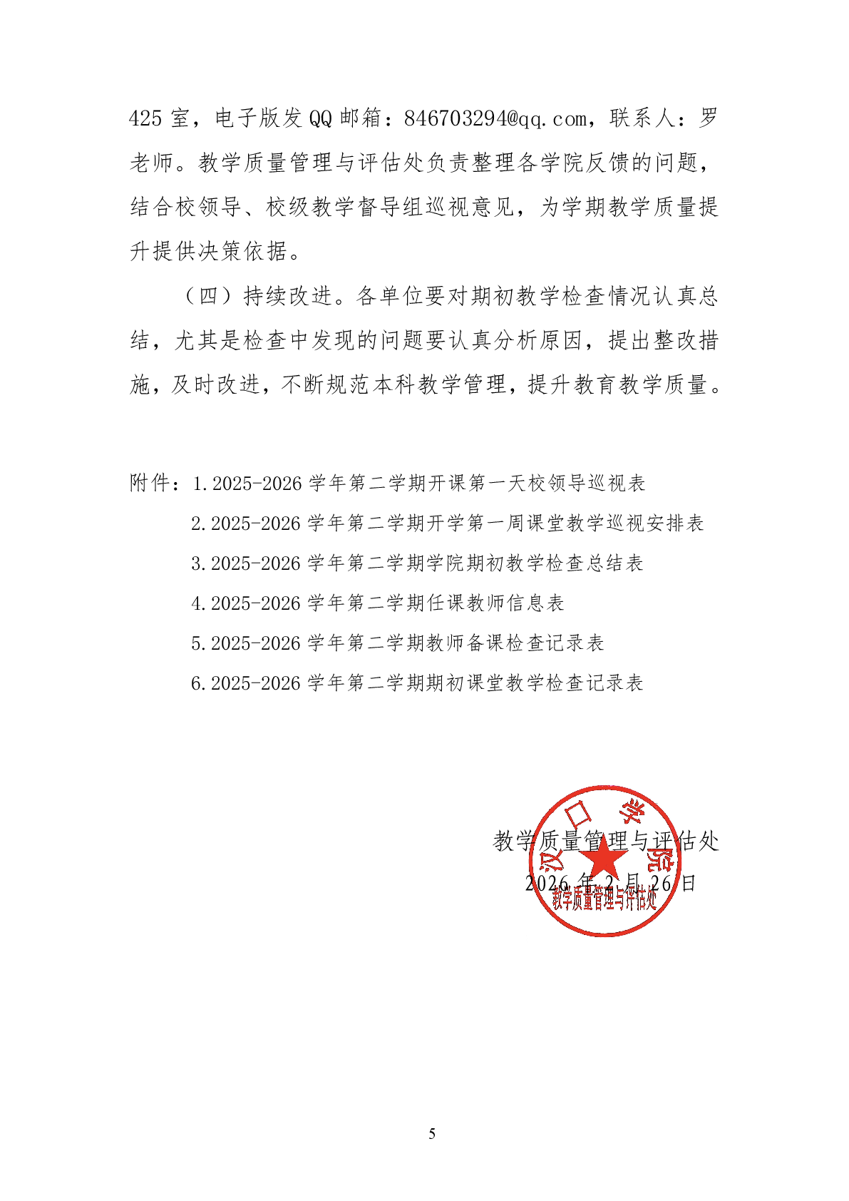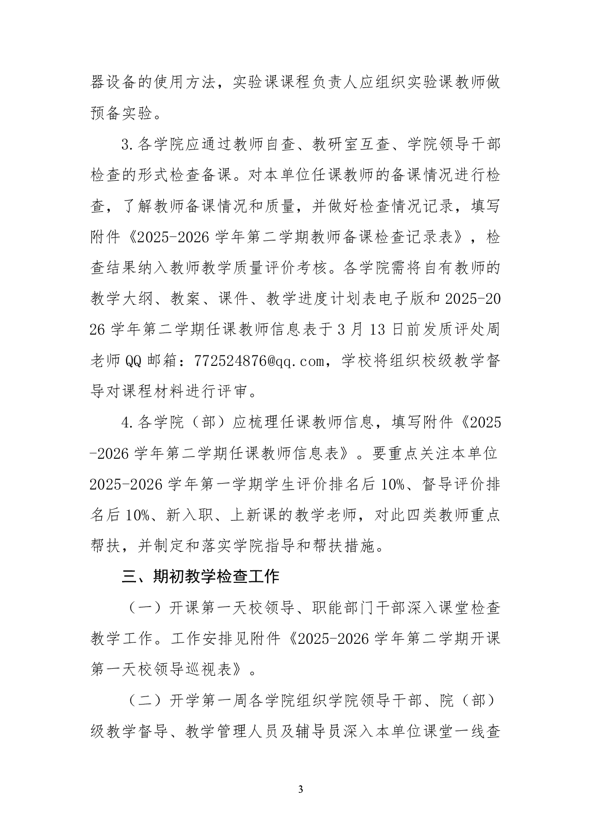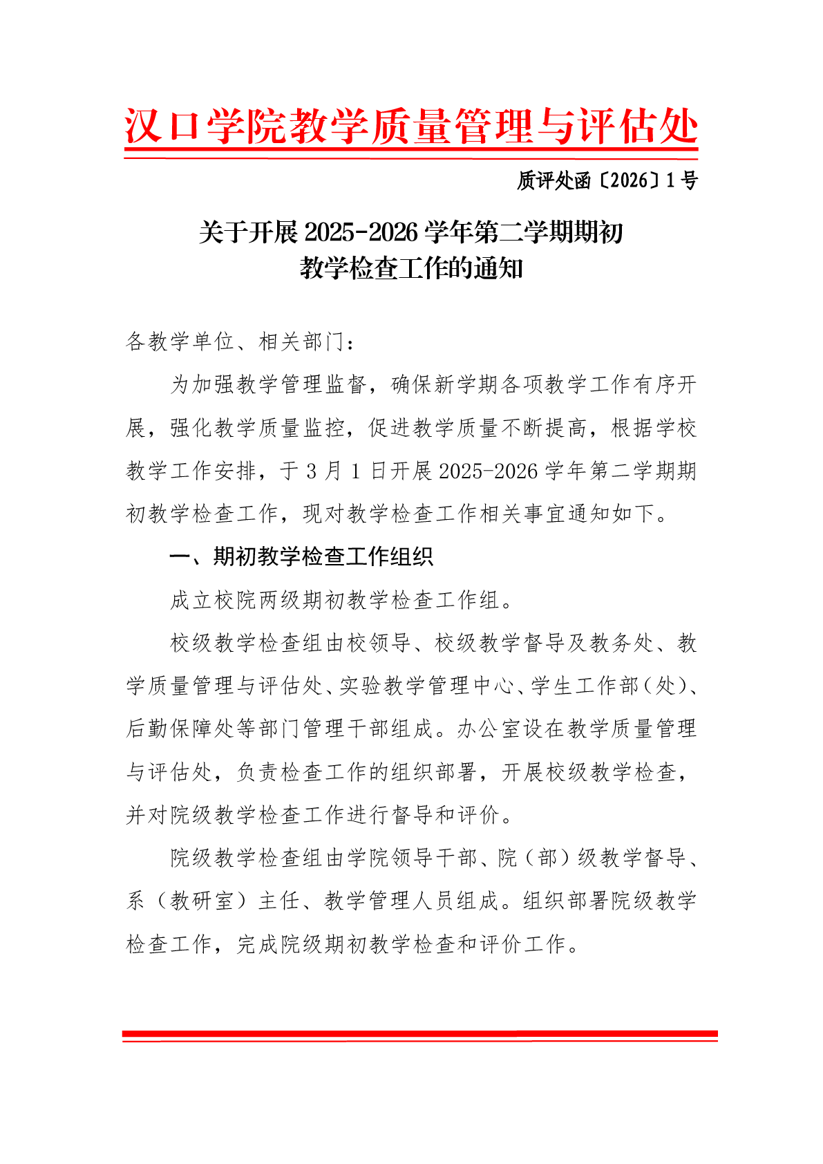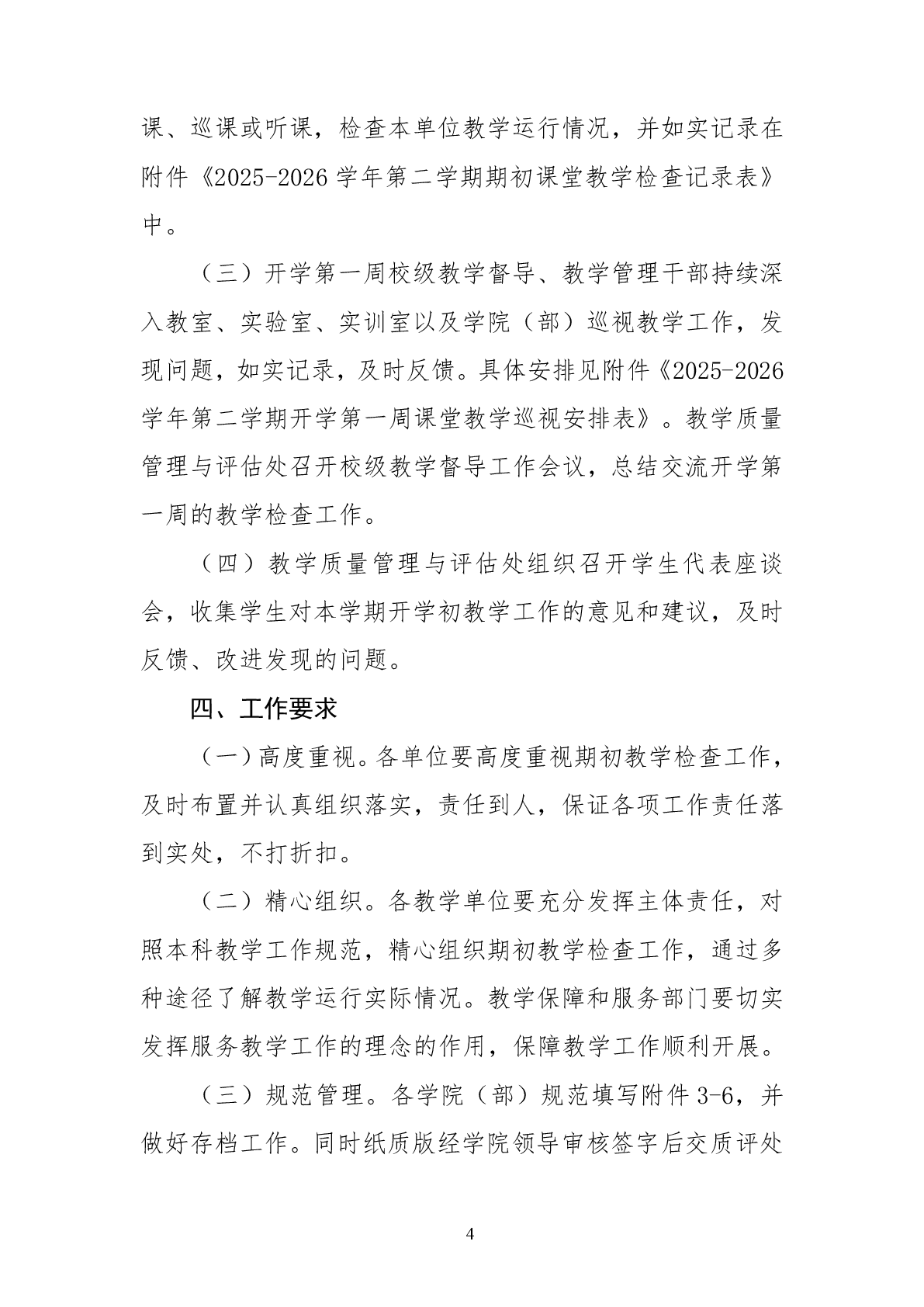 关于开展2025-2026学年第二学期期初 教学检查工作的通知